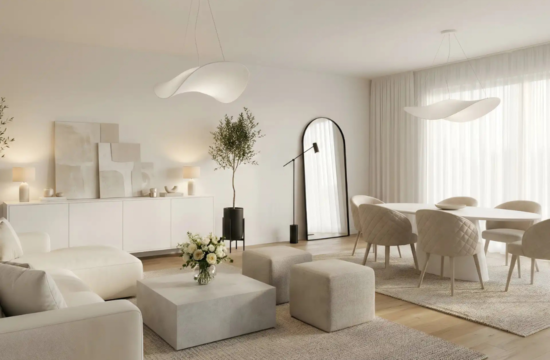 Právě díky této vyváženosti je Cloud Dancer schopný fungovat napříč styly i typy interiérů.