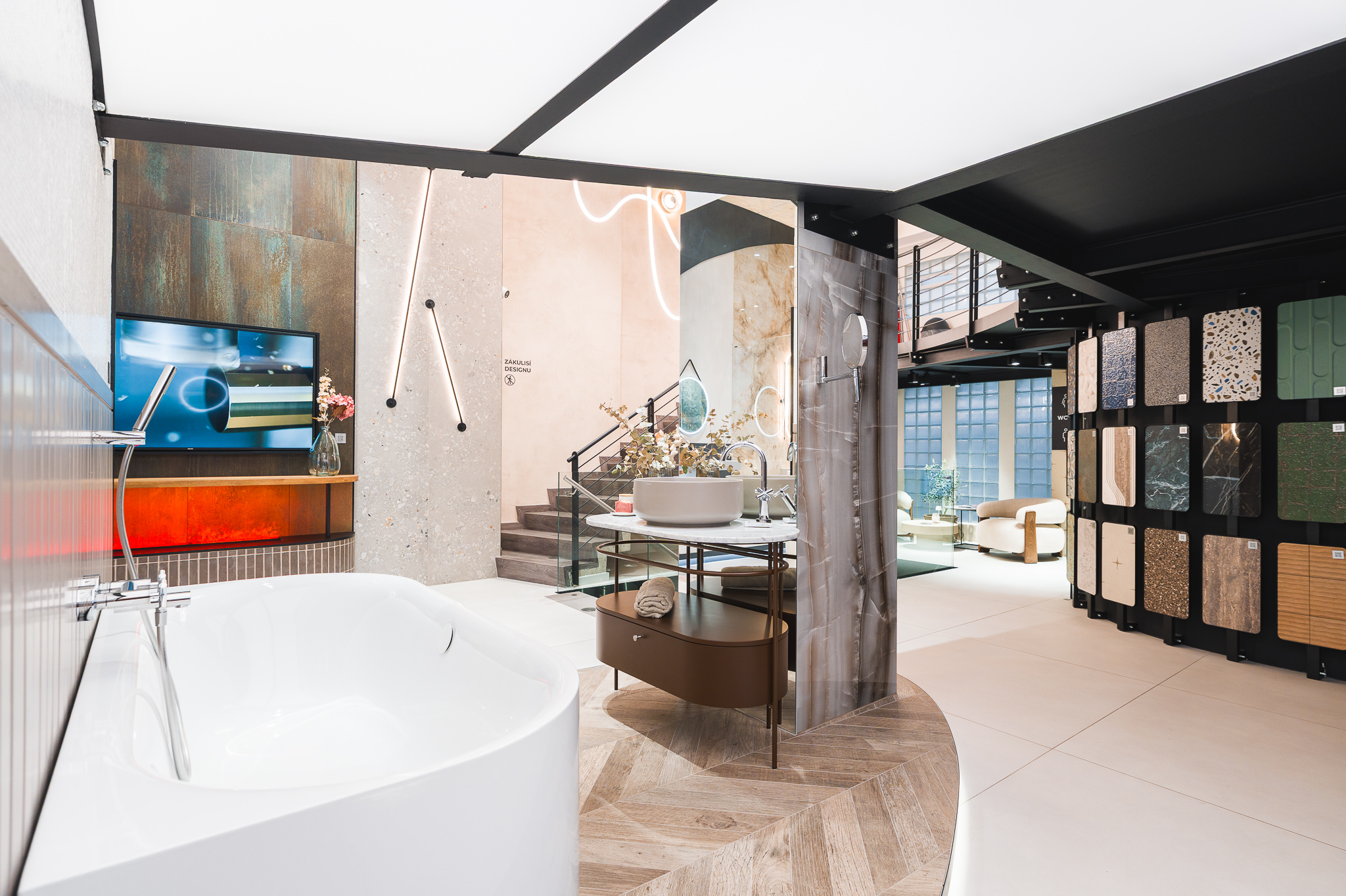 V showroomu Keraservis v Centru bydlení a designu Křižíkova v Praze najdete široký výběr obkladů, dlažeb a vybavení do koupelny od ověřených značek z Itálie, Španělska a České republiky.